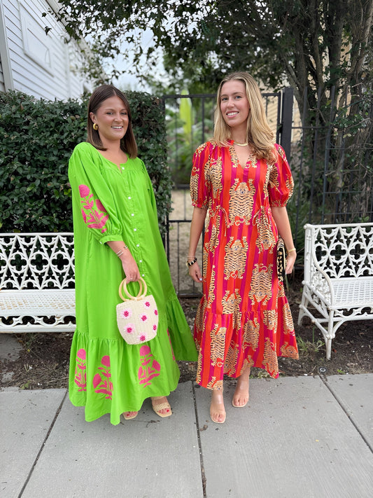 State Street Maxi in Pink & Green Trellis