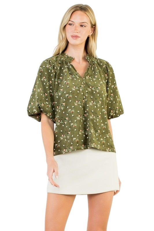Sold outOlive Floral Corduroy Top