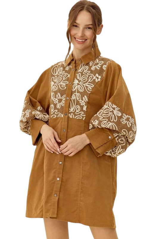 Camel Embroidered Shirt Dress