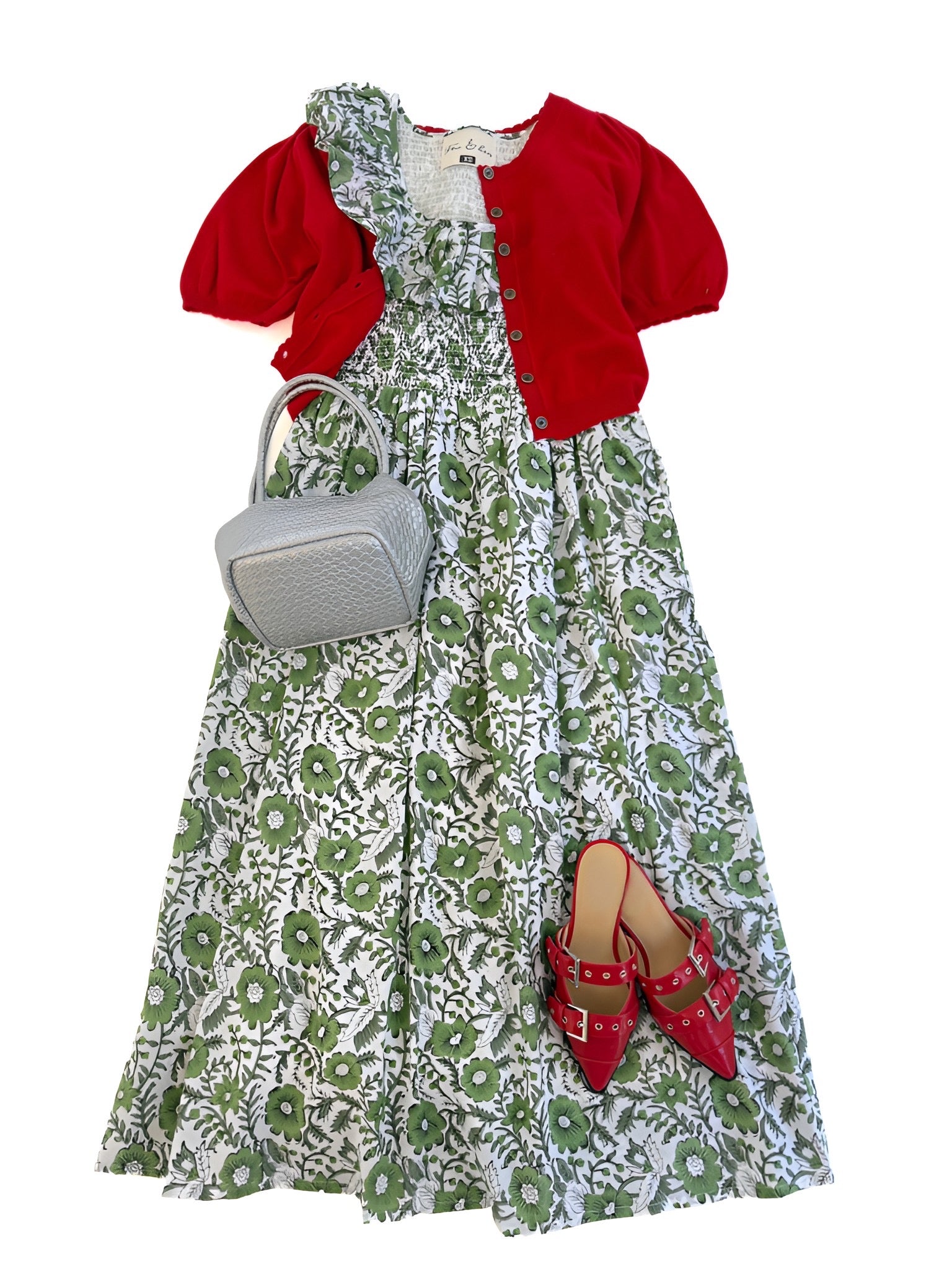 Hassle Smocked Midi in Green Floral