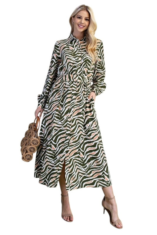 Olive Stripes Shirt Dress